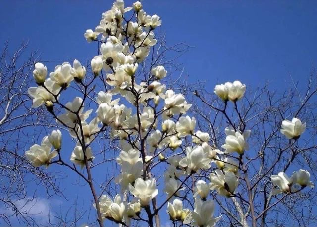 也叫望春花,一般株高在6~12米内不等,生性强健、长势喜人,情况最好时,植株可一直生长至25米。望春玉兰往往习惯在早春2月份左右,先开花后长叶,其中,花朵繁盛的日子基本不超过一月。