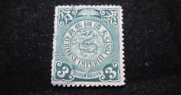 这是中国第三套邮票,于1909年发行。它以两条相连的龙为图案,象征着皇权的统一,由于发行量有限,成为稀缺邮票。