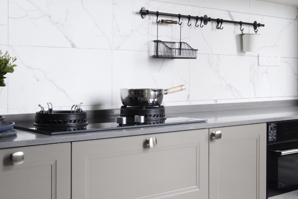 厨房的空间作用就是用来烹饪,我们要在厨房中完成食物烹饪的步骤,那么我们就需要有足够的空间来完成这些步骤,厨房要起码能容纳一个切菜板、两盘煮好的菜和一些待用材料的空间,可以考虑在设计上加上收缩功能的工作板,要用的时候拉出来,用完了就马上退回去。