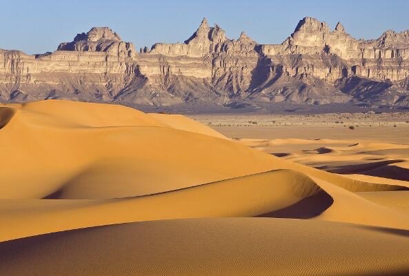 撒哈拉沙漠是位于非洲北部的世界上面积最大的沙漠,约形成于250万年前,其面积达932万平方千米,自然和气候条件非常恶劣,完全不适合生物生存。