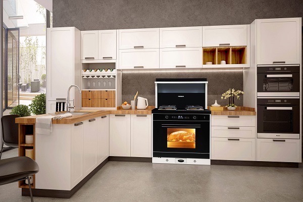集成灶是一种集吸油烟机、燃气灶、消毒柜、储藏柜等多种功能于一体的厨房电器。和分体灶相比,在占用同样厨房面积的情况下,可以实现多种厨电的功能,满足用户的不同实际使用需求。