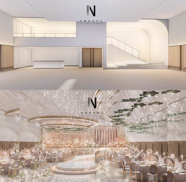 两大婚礼特装厅经由设计师悉力研磨,定制为两款不同风格超IN品质的婚礼特装场景空间专供婚礼新人选择。