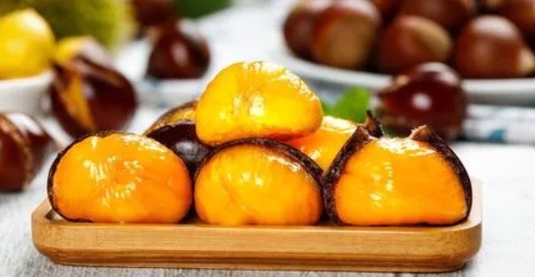 板栗味甘性温,有健脾益气、补肾强筋、抗衰老的功效。板栗含有多不饱和脂肪酸、维生素、矿物质和膳食纤维,可降低高血压、中风和冠心病的风险。