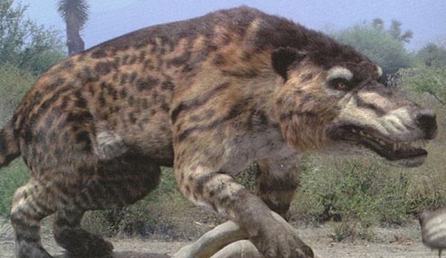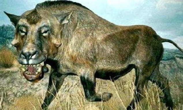巨豺齿兽的身形和犀牛很相似,具有极强的攻击性,生活地区主要分布在美洲和亚欧大陆,它们是在恐龙灭绝之后出现的史前生物。