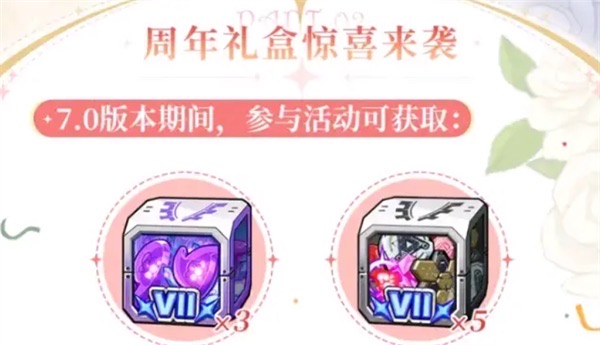 3、周年限定礼盒惊喜来临,满足活动要求即可获得悠远的回响和少女的心意礼盒。