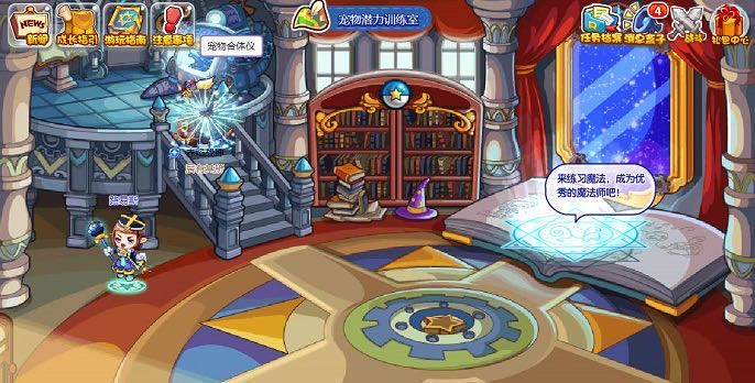 1、洛克王国合成多灵主首先需要前往魔法学院的宠物潜力训练室,使用其中的宠物合成体仪。