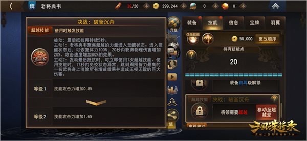 破釜沉舟,决战到底!老将典韦获得超越技能【决战:破釜沉舟】之后,可聚集超越力量进入觉醒状态,恢复100%体力并增伤20%,攻速增加80%;在发出最后抵抗时,可进入免伤无敌状态。续航、输出、防御三合一的效果,将老将典韦的威力展现得淋漓尽致!