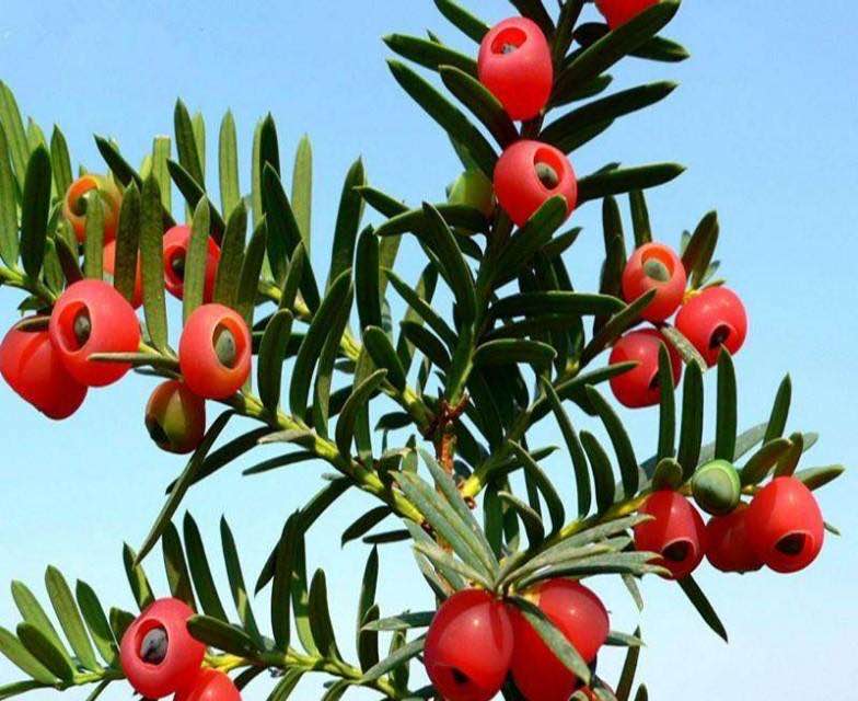 第二步:观察一个柄上是球果还是种子,把剩余五种分成两类:红豆杉和三尖杉在一个柄上有一颗种子。其余三种一个果序柄上有球果。