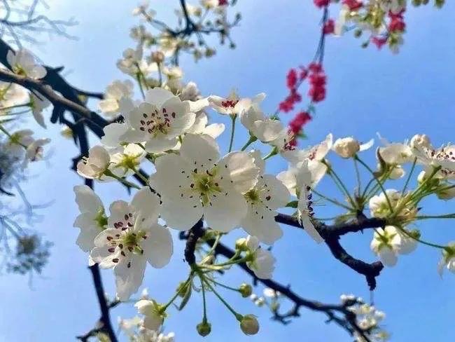 人间四月芳菲尽,说的就是四月开花的梨花。【周边网】梨花洁白的花朵如同雪花一般,有着浓烈香味。