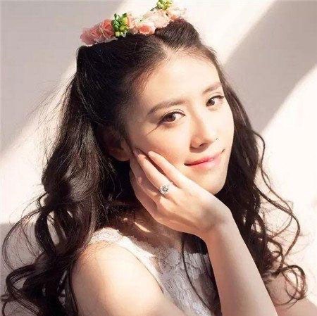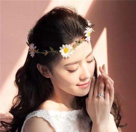 大光明的波浪长卷发造型,适合自觉得额头饱满完美的妹纸,花环的点缀,陪衬出美感。
