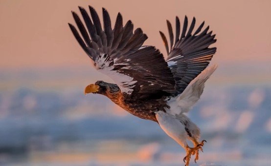 玉带海雕拥有锋利的爪子,性格比较凶猛,主要分布在有水的地方。