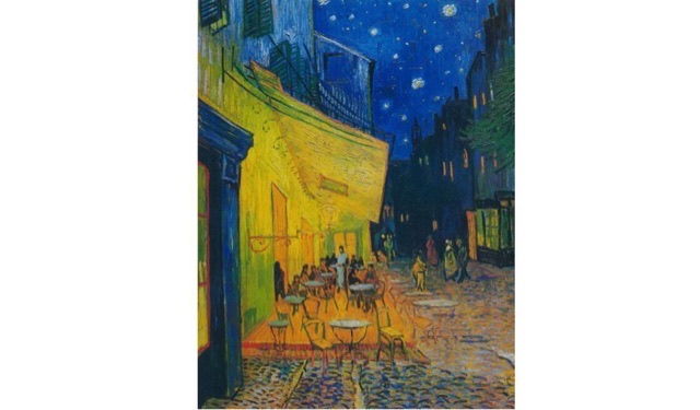 《夜晚露天咖啡座》创作于1888 年,这幅画能够看出画家作画的热情,画中的黄色咖啡座和蓝色的星空形成对比,非常震撼,地板周围都是用黄色来渲染更有生命力,可以看出来画家的作画热情,是梵高所画的浪漫主义画作。