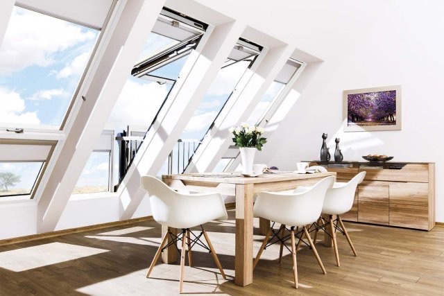 房屋天窗的中空玻璃可以挡去30分贝以上噪声。如果天窗采用中旋开启方式,更便于气流回旋进入室内。即使隆冬季节也不会使寒风扑面,而是柔和地使室内空气变得清新,便于天窗的开关和内外侧玻璃的清洁。