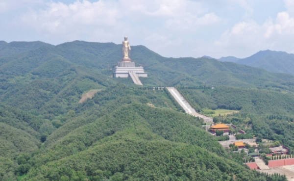 中原大佛是世界上最高的佛像,坐落于河南省平顶山市鲁山县尧山佛泉寺,是目前已知道世界上最高的佛教造像,中原大佛总高度达到208米,身体高度达到108米,仅仅莲花座高度就达到20米,金刚座高度达到25米,须弥座的高度为55米,从这样的尺寸当中可以看到中原大佛的壮观之处,中原大佛整体铸造使用了3300吨铜材料,108公斤黄金,特殊的钢材料使用了15000多吨,中原大佛的表面面积大概11300平方米,每一个面积都是通过焊接所焊成的,使用了13300块铜板焊成。