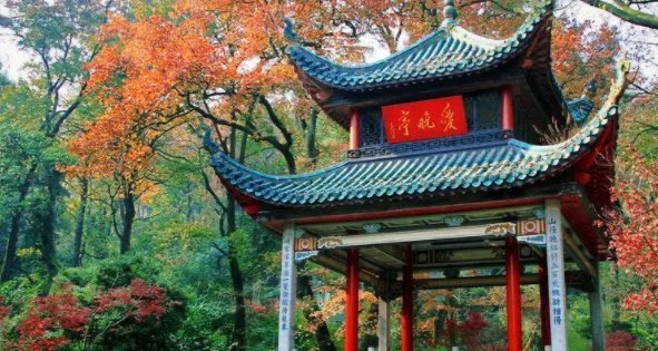 爱晚亭位于湖南省长沙市湘江西岸、岳麓山清风峡中,始建于清乾隆五十七年(1792年),为清代岳麓书院山长罗典创建,原名红叶亭,后由湖广总督毕沅,据“停车坐爱枫林晚,霜叶红于二月花”的诗句,更名爱晚亭。1983年,爱晚亭被湖南省公布为省级文物保护单位,2013年,爱晚亭入选国务院公布的第七批全国重点文物保护单位名单。