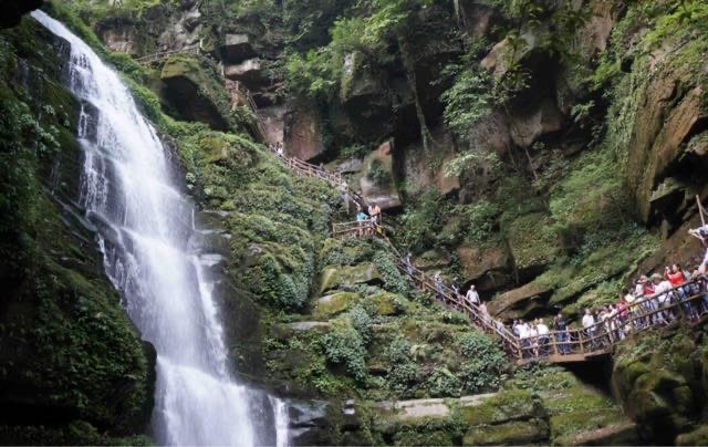 中国最美山谷瀑布景区之一,[bai]主要景点有碧峰峡瀑布群、千层岩瀑布、鸳鸯瀑布、青龙潭瀑布等。碧峰峡瀑布群有瀑布、溪潭50余处。千层岩瀑布高约100米,宽10米,如仙姬秀发,飘飘洒洒,常年从层层堆积的陡岩垂泻,形成两梯级台式瀑布。鸳鸯瀑布高30余米。青龙潭瀑布高约40米,宽6米,瀑布从山谷丛林中飞流而下,穿数层怪石注入谷底,势如青龙腾冲。