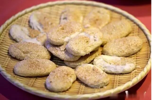 五香麻糕是以糯米粉、芝麻和白糖等主要原料制作的一种苏州传统糕点,其外观色泽金黄,吃起来松脆可口,麻香味非常浓郁,令人百吃不厌。