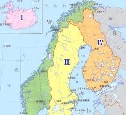 地域包括欧洲北部的挪威、瑞典、芬兰、丹麦和冰岛 5个国家,以及实行内部自治的法罗群岛。