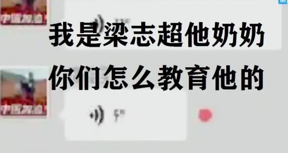 梁志超他奶这个梗出自一个学生家长群,当时群里有位家长发语音消息:“我是梁志超他奶奶,你们怎么教育梁志超的,梁志超骂我大sb,骂我跟下小菜似的,mlgbd......”,这位奶奶在语音你说老师对梁志超缺乏管教,以至于梁志超沉迷于手机游戏,已经到了废寝忘食的地步,还产生逆反心理。