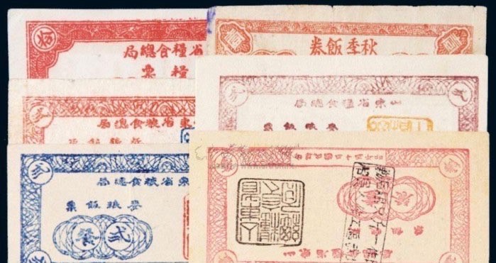 3:山东地区饭票、粮票一组六枚,估价:RMB 100-1,000 ,成交价:RMB4,830