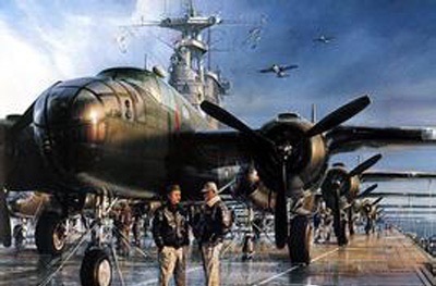 “让杜立特和他勇敢的中队起飞吧。一路平安,上帝保佑!”哈尔西向大黄蜂号发出信号。上午8时,大黄蜂号调头迎风,杜立特紧紧握了一下舰长米切尔上校的手,然后对他的同伙喊道:“好伙计们,就这么着,一起出发吧!”硕大的大黄蜂号在她所依附的海水中与一片落叶也无甚区别,甲板前后摇晃几乎贴近了海面。B-25的左翼已经伸出大黄蜂的左弦外,杜立特将油门加到了最大,飞机摇摇摆摆地朝强风中冲去,沉重的机身在甲板尽头缓缓抬起,随后每一架飞机离舰,甲板上都发出一阵欢呼。8时24分,16架飞机全部安全起飞。海军摄影师约翰·福特中校和他的摄影组对整个起飞过程进行了拍摄。