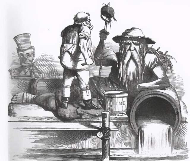 早期无论是富裕家庭的抽水马桶,还是贫困家庭的旱厕,都将排泄物排进粪池。《Slate》杂志的埃拉.莫顿(Ella Morton)的数据显示,当时伦敦的污水量为20万。唯一的处理方法只有城市的夜班工人在城市睡觉的时候,直接进入到粪池里去铲垃圾。但是他们永远无法清空粪便。想先一下,粪坑在烈日炙烤下,散发出的那种难闻的气味~