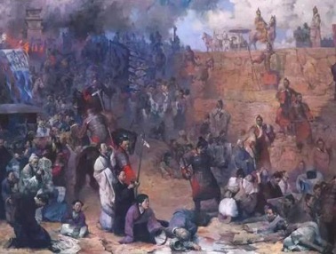这时,代替蒙恬戍守朔方边塞的王离,也率大军由上郡(治今陕西榆林东南)东出,包围了张耳和赵王歇驻守的巨鹿城(今河北平乡境)。楚王派宋义、项羽救赵,派刘邦西入关中。宋义北至安阳,逗留不进。项羽杀宋义,引兵渡漳河,经过激战,解巨鹿之围,被推为诸侯上将军。以后,秦将章邯率二十万人向他投降。