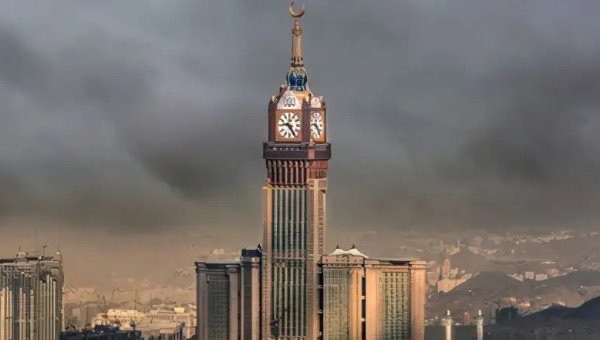 皇家钟塔酒店的顶部四面都是钟表,而且每个钟的表盘直径有40米。如果仔细观察,会发现这栋大楼的顶端还有一轮弯月,这轮弯月是沙特送入云霄的地标性符号,光是这个设计就花费了8亿美元,据说这个钟塔的主要目的,是当作朝圣时标准时间校对之用。