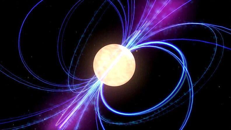 由于中子星的自转轴和磁轴一般不重合,中子星具有强大的磁场,其强度可达到约10^8-10^15高斯。这个强大的磁场会对中子星表面和周围的物质产生显著影响。当中子星的磁轴与我们的视线相交时,我们将看到不断周期性的电磁辐射,即脉冲信号。脉冲星的脉冲信号类似于灯塔的光束,每隔一定的时间间隔内,光束亮起并照亮周围的物体。