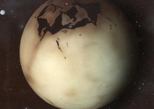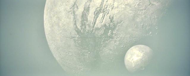 厄拉科斯有两颗天然卫星,电影有句台词说没有卫星指的是人造卫星。其中比较大的一颗上面有一个形状类似手掌的骷髅,也被称之为上帝之手,这颗卫星严重干扰了厄拉科斯的通讯。