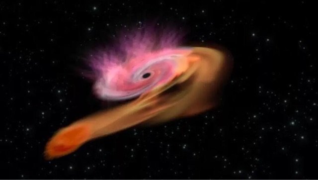 随着恒星受到更多的引力作用,它的物质会被黑洞吸收。这种过程被称为吸积盘形成。吸积盘是由被黑洞吸收的恒星物质所形成的环状结构。在吸积盘中,物质会被压缩和加热,因摩擦而发出强烈的辐射,这种辐射被称为“吸积射流”。