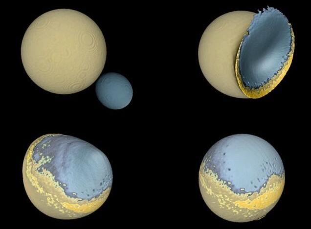 不过,阿斯普豪格认为,有时候在宇宙中,并不全是这种高速碰撞,也有低速碰撞。即使这些物体的绝对速度很快,但由于运动方向非常相似,相对速度也会比较慢,这就会造成低速碰撞。他认为,这也是许多彗星形成的原因。