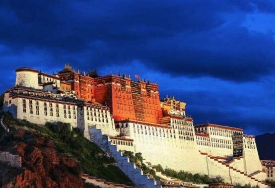 布达拉宫是世界上海拔最高,集宫殿、城堡和寺院于一体的宏伟建筑,也是西藏最庞大、最完整的古代宫堡建筑群。其主体建筑结构分为白和红宫,殿高为200米,外观13层,内是9层。这座宫殿是为吐蕃王朝赞普松赞干布为迎娶尺尊公主和文成公主而兴建。