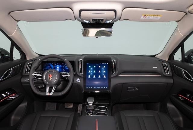 红旗HS3(询底价|查参配)的内饰配备12.3英寸全液晶仪表和12.6英寸中控大屏。,空调出风口集成在屏幕两侧,看上去有着不错的精致感。同时换挡面板采用了特别的黑色花纹装饰,中央扶手箱盖板、中控台上方中部也有红旗的品牌logo装饰。根据车型的不同,新车还将提供无钥匙进入、自动空调、ACC自适应巡航、253色氛围灯和多种驾驶模式调节等。