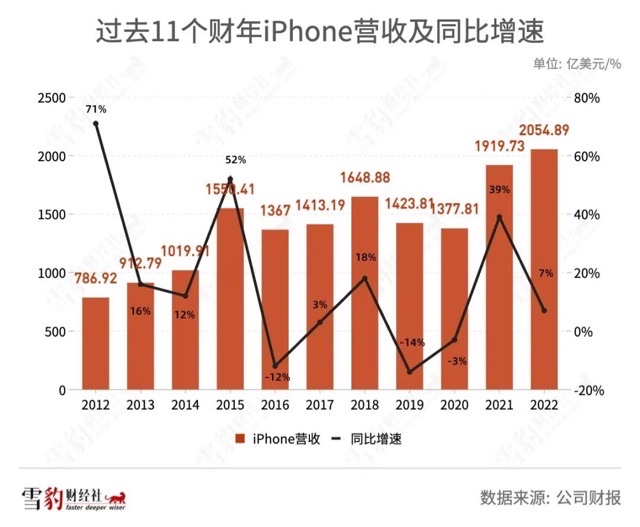 iPhone之外,由于出货量大幅下滑,Mac营收同比降31.31%至71.68亿美元,占比降至7.56%。过去10年,该占比始终维持在10%左右。