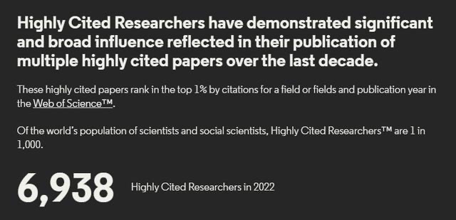 “高被引科学家”榜单每年更新一次,由全球科学和知识产权最大的供应商之一科睿唯安所评选,在学术界认可度较高。
