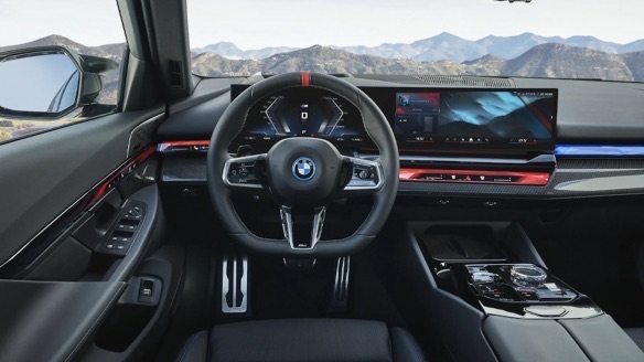 内饰方面,全新M5的内饰设计风格将和新一代5系保持一致,不过在细节上有所改进,例如加厚座椅、铝制踏板、深色车顶内衬等,以及更多BMWM标志和碳纤维部件,该车还配有弧形双联屏,集成了12.3英寸数字仪表板和14.9英寸中控触摸屏。【周边网】