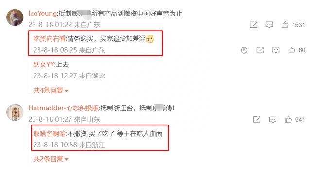情绪更加激动的网友甚至开始想出下一步对策,如果不撤资还是会买该品牌,但是买了之后就会立马退货加差评。