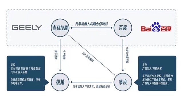 当天,吉利控股集团也发布公告称,正式推出高端智能汽车机器人品牌“极越”, 并宣称吉利与百度合作的“汽车机器人战略合作项目”度过了集度1.0,现在迈入百度、吉利、集度、极越高效协同2.0阶段。