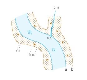 a代表岸线,b代表高水位岸线