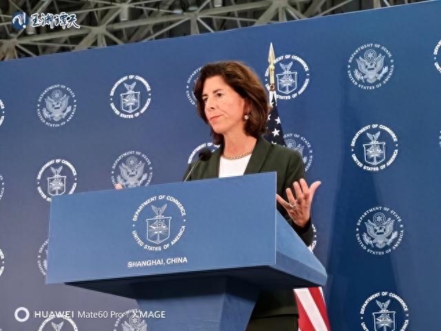 没错,雷蒙多访华期间,象征着华为重返5G市场的Mate60系列手机发布了,好巧不巧,雷蒙多还在公开场合各种展示风采。于是,我们的媒体人士也是不失时机地用一台华为Mat60 Pro手机,为她拍了一张水印加持的照片。