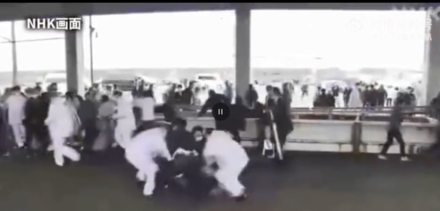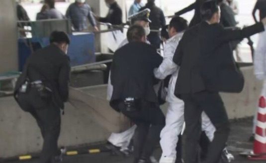 报道,日本广播协会公开了安保人员正在行动现场画面,报道称,一名男子被在现场的警察制服。