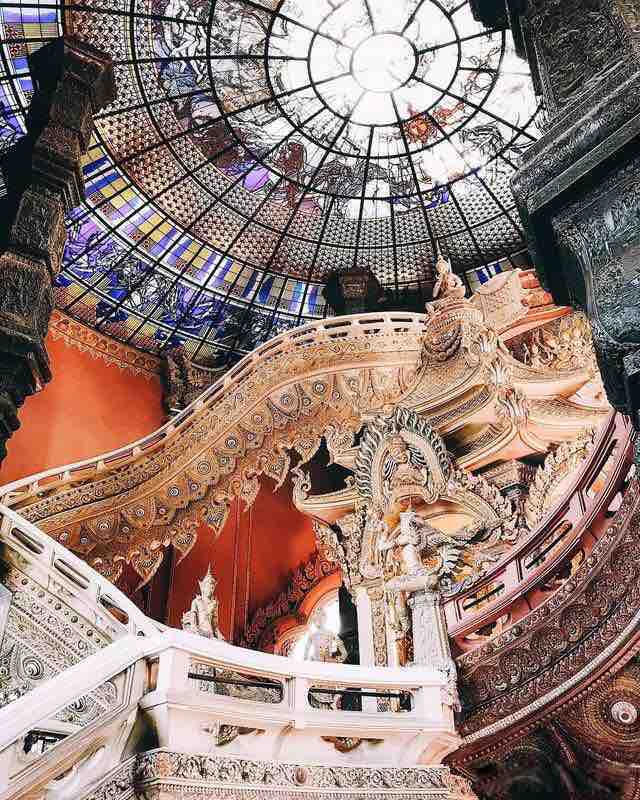三个头的象神雕塑、粉色的精美建筑和彩绘玻璃天花板,原本这里就是当地人朝拜的神圣之地,如今许多文艺少女也慕名前来。