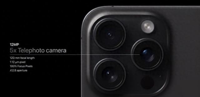 在苹果新发布的 iPhone 15系列手机中,iPhone 15 Pro Max 是唯一独享5x光学变焦的型号(等效120mm长焦镜头,焦段覆盖范围达到13mm-120mm)。苹果声称在 iPhone 15 Pro Max 上使用了一种先进的四重反射棱镜,通过镜头后方的折叠玻璃结构,对光线进行四次反射。这让光线在空间不变的情况下经过的光路更长,从而带来了更长的新焦距。