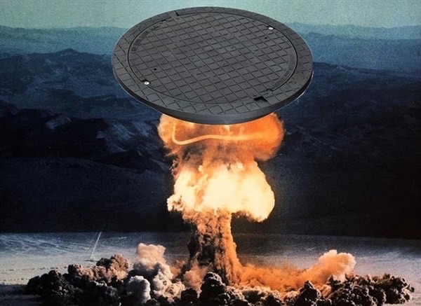 有计算失误,爆炸威力超出预期5万倍,这个直径1.2米、厚约10厘米的井盖瞬间被顶飞,高速摄像机中也出现了一帧,经过计算其速度约为25.2万公里每小时。