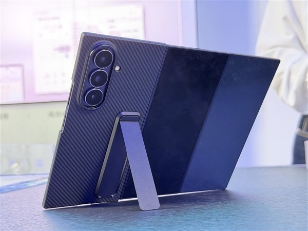 值得一提的是,三星这次在包装里附赠了一个凯夫拉材质的官方保护壳。不仅轻量抗摔,背部还集成了一体式折叠脚撑——展开后能稳稳支撑手机,无论是横屏追剧还是视频会议,都省去了额外买支架的麻烦。这个细节,很三星。