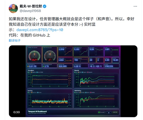 目前,戴夫已在X平台分享了这款仪表盘的实拍图,并且贴心提示,用户可直接前往他的GitHub页面,查看《Tempest AI》的实时仪表盘演示,以及相关开源代码。