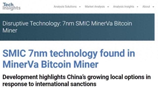 2022年7月,国外著名「逆向工程」分析公司TechInsights 发布报告,他们拆解了比特币矿机企业 MinerVa Semiconductor 挖矿用的专用芯片,分析后确认这颗芯片是由中芯国际代工,制程为7nm。