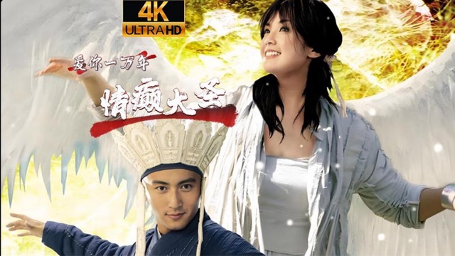 简介:《情癫大圣》(A Chinese Tall Story)即依据中国古代作家吴承恩所撰写的神怪小说《西游记》为基础,再进行改编的电影作品。该片由著名导演刘镇伟执导,华谊兄弟传媒股份有限公司、西部电影集团股份有限公司和英皇电影联合出品,于2005年12月22日在香港上映,由谢霆锋、蔡卓妍、范冰冰等主演。作为《大话西游》终结篇,成为了2005年圣诞档期的电影热点之一。讲述了唐僧、孙悟空、猪八戒和沙僧一行四人历经千辛万苦来到了莎车城,谁也没想到,在盛大欢迎仪式的背后潜伏着巨大的危机…… 第1站:混战千年虫妖 唐三藏师徒四人在莎车城外看到男男女女载歌载舞列队欢迎,却不知其实千年虫妖劫走了莎车城的所有小孩,要莎车城的人以唐僧师徒交换。悟空识破诡计后,一场混战开始,孙悟空用金刚丝裹住唐僧,将他远远掷出。分别之际,他将金箍棒交给师父。裹着金刚丝的唐三藏消失在天际之后,大开杀戒的孙悟空三人被虫妖拿下。 第2站:遭遇妖女、美女各一名 唐三藏降落在了恒河区沼泽地的村落里,这里住着一群快乐的妖怪。妖怪们都在奔走相告宇宙间著名的情圣“孙悟空(因唐僧拿着金箍棒,被误认为孙悟空)”从天而降。为了能用“孙悟空”吸引唐三藏,妖怪们派蜥蜴妖中最丑的女妖来看守“孙悟空”。醒来的唐三藏第一眼就看到了女妖岳美艳。几天后,唐三藏在岳美艳生活的洞里发现了一个雪白的大蛋。打开蛋壳,他看到了一个美得惊人的女子蜷伏其中,这是外星人小善。 一次在梦中,唐三藏无意说出梦话,让岳美艳发现了他是唐三藏的秘密。本欲吃下唐僧肉的岳美艳忽然发现自己无法对他下手,发现自己已经爱上了他。此时,虫妖搜索唐三藏的踪迹来到了岳美艳的住处,两人情急之下坐着金箍棒逃到东海边上。 第3站:勇闯南天门 失了定海神针(金箍棒)的龟丞相从海中升起,欲索回金箍棒。唐三藏与岳美艳联手说得龟丞相自杀死,东海龙王率领虾兵蟹将前来讨命,两人再度借助金箍棒逃到了南天门,又闯祸打死了四大天王,再度逃走。 村落里的妖怪们发现了“孙悟空”就是唐三藏的秘密,岳美艳却说自己已经对唐三藏下毒,要一个月之后才能解毒。她也希望通过这一个 月,让唐三藏真的变成妖,留在自己身边,并安排了种种计谋让唐三藏“堕落”。唐三藏果然性格大变,决定与妖为伍。一天,他与从蛋中出来的小善攀谈,得知她是外星人的公主,原来曾生活在地球,如今为了躲婚再次来到地球。小善说自己爱上了第一个探头到蛋中来看她的人,唐三藏暗暗想:“那不就是我吗?” 第4站:爱情警报!星球大战! 一次偶然,唐三藏知道了岳美艳设计欺骗自己,怒斥岳美艳后告诉她,自己不再爱她。并和小善公主一起去救徒弟。伤心的岳美艳黯然留下后发现自己也不是妖,而是外星人遗弃的孩子。岳美艳戴上属于自己的信物,变身成为真正美艳的女子。变身后的岳美艳立刻冲向虫妖巢穴,加入了唐三藏和小善的战团。一场大战后,孙悟空三人获救。小善公主说出自己爱的是岳美艳,并希望她和自己一起回到外星球,最后却独自乘飞船离开。 第5站:如来佛祖现身 玉帝决定审判杀死四大天王的岳美艳,唐三藏忽然领悟心中真爱,为了美艳大闹天宫。如来佛祖现身,向唐三藏讲述了真爱的要义。为了惩罚冒犯天规的岳美艳,也为了让凡心未定的师徒四人修成正果,如来将岳美艳变成白龙马,让唐三藏重新走上取经路。影片的结尾处,唐三藏追着生气的白龙马一路小跑,自言自语地解释着自己种种不是,一人一马走向西方。