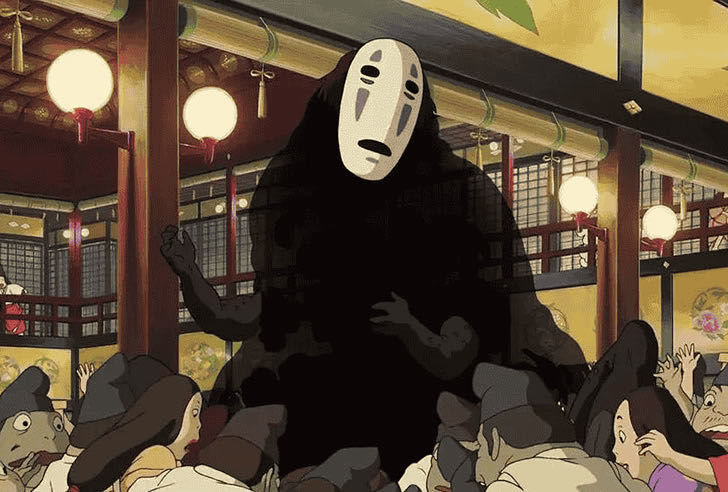 3、另外,无脸男全身黑色,戴着白色面具,他表面看起来很可怕,实际上内心善良,渴望交朋友,后来与千寻建立了深厚的友谊。
